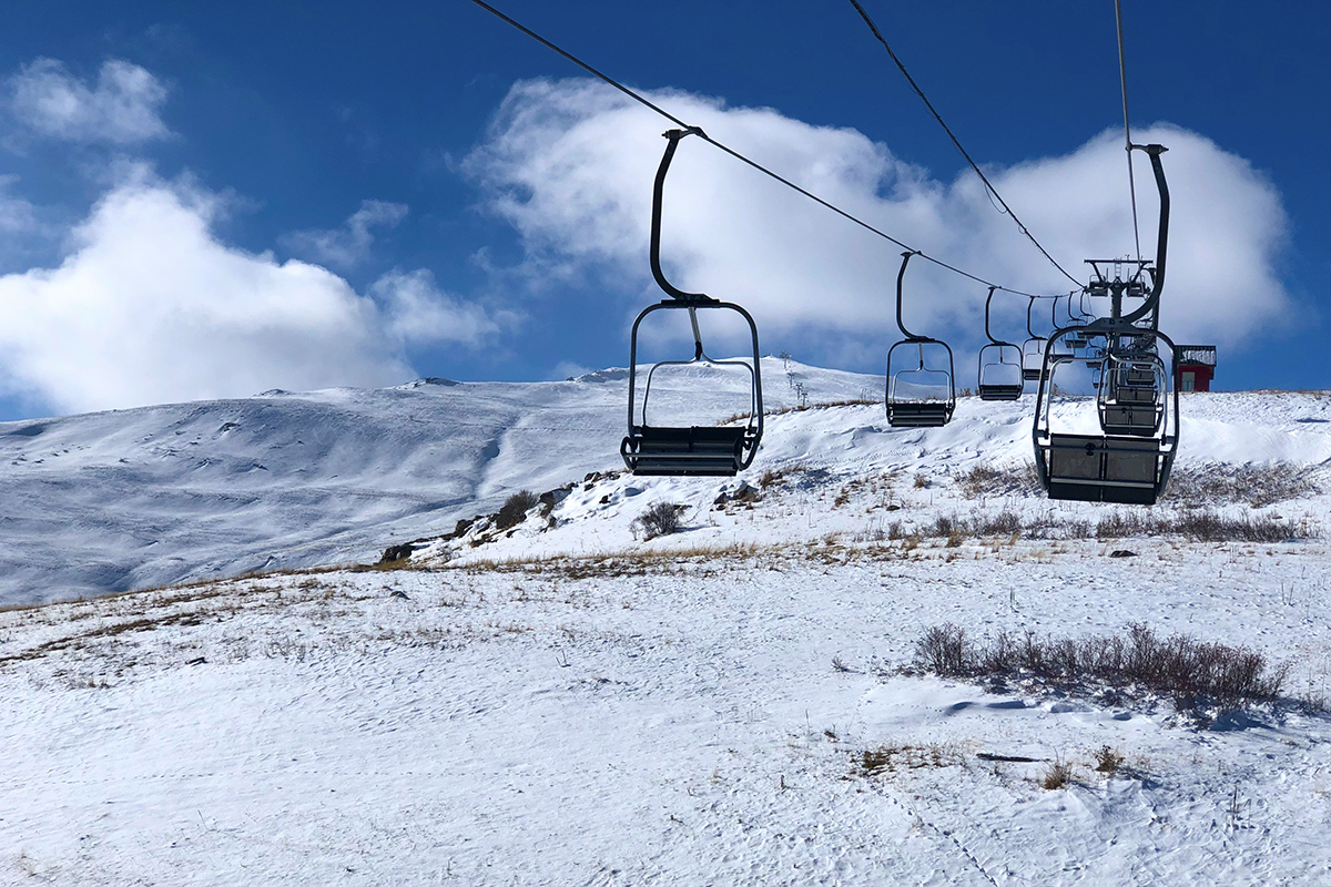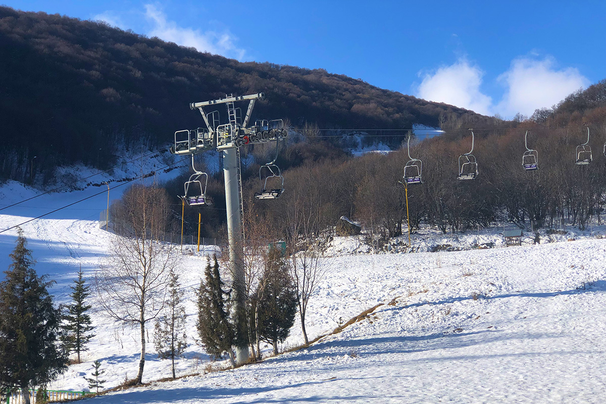The staff of the ropeway are carrying out preparatory work before the opening of the ski season.